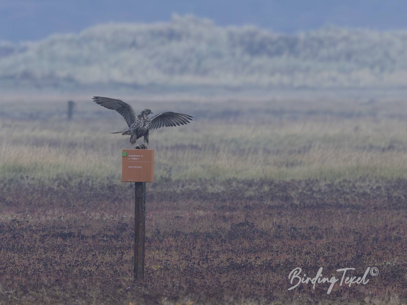Een Giervalk, die in het Dutch Birding vogelweekend werd ontdekt op de zuidpunt en enkele dagen in de Slufter werd waargenomen. Rustig zittend op een paaltje of jagend.