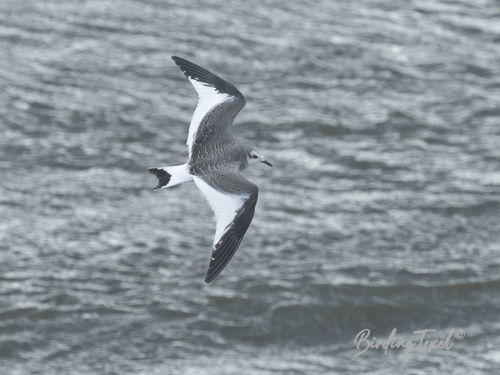 Een Kleine Kokmeeuw, die al weken heen en weer pendelt tussen Den Helder en Texel. Op een enkele dag was deze dwaalgast samen te zien met een jonge Vorkstaartmeeuw in de veerboothaven.