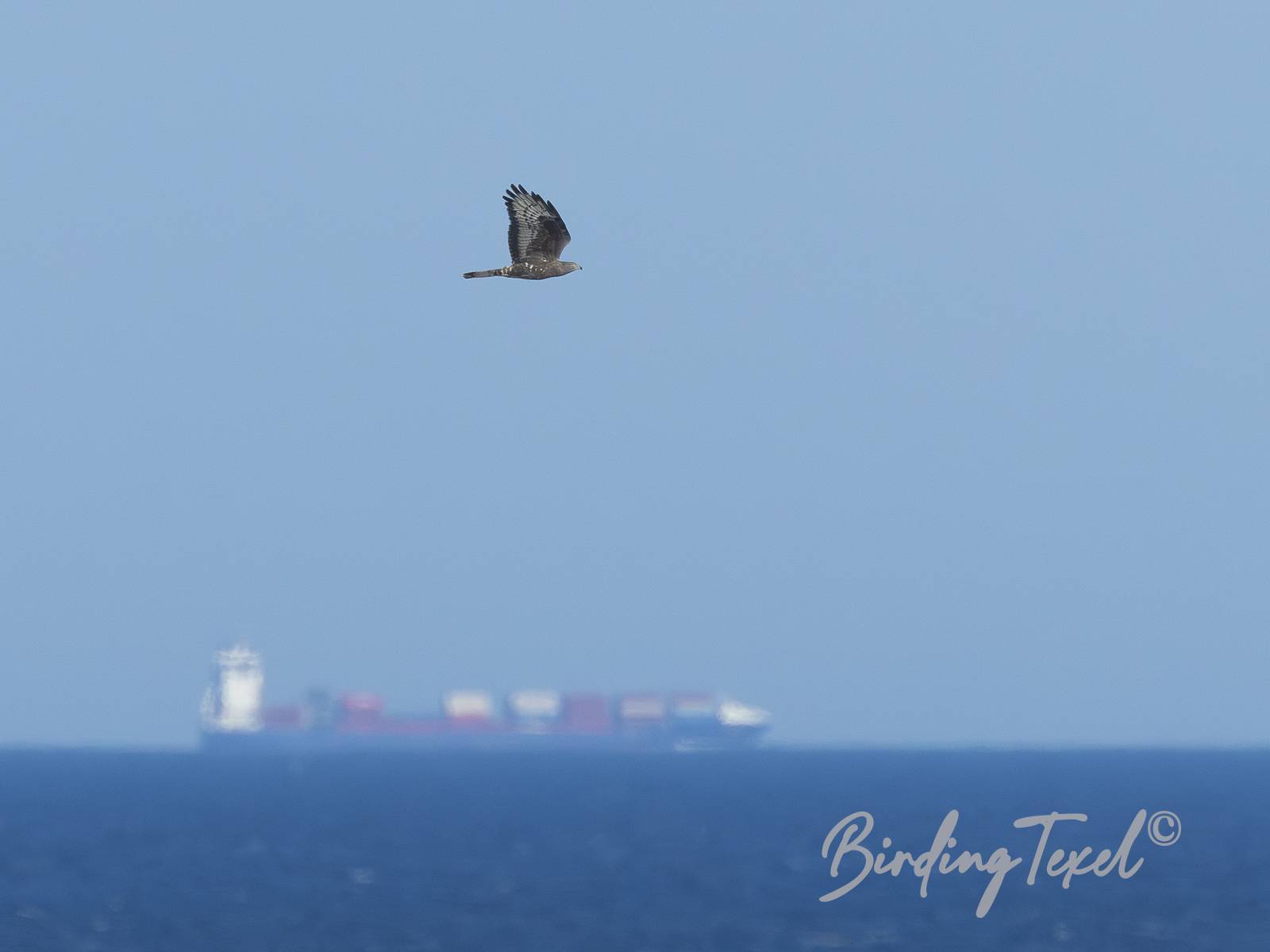Na enkele dagen aanhoudende flinke oostenwind werden vanaf de trektelpost in de Tuintjes meerdere roofvogels waargenomen op hun tocht naar het noorden. Sommige staken al ruim voor de trektelpost via de Noordzee over naar het noordelijker gelegen Vlieland.