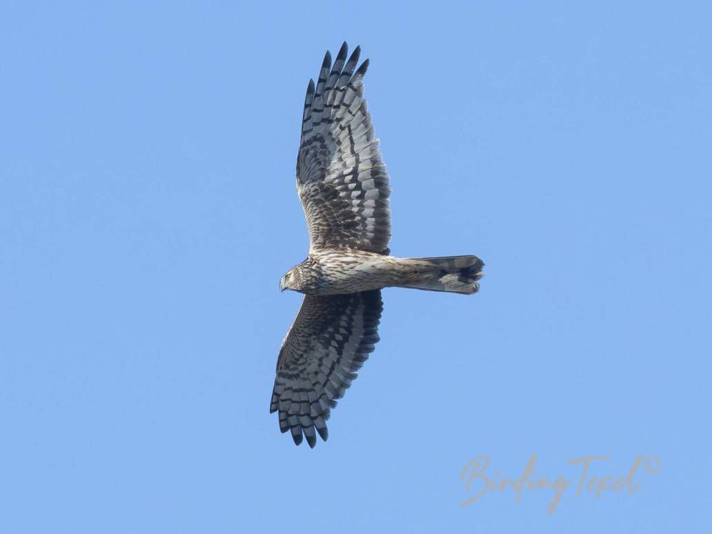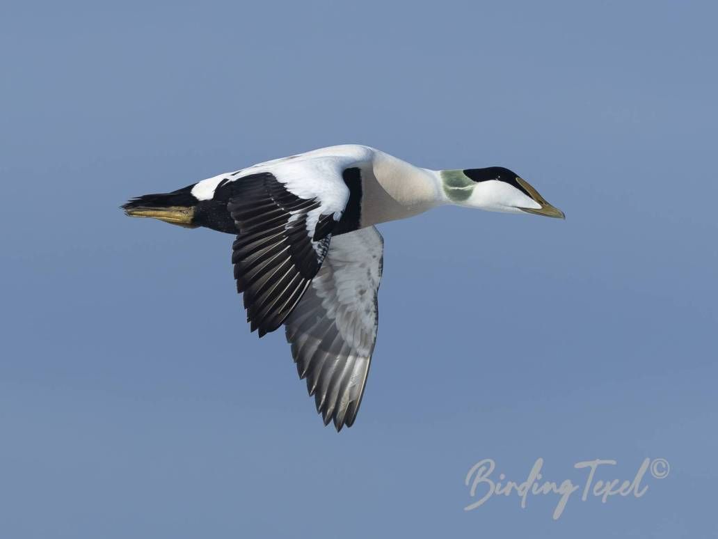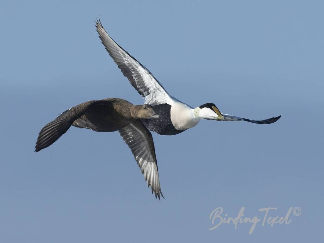 A female Hen Harrier hunts over the dune tops. On the way back along the beach, I see groups of Oystercatchers and Common Eiders flying north. Some of the Eiders have already paired up. Spring is on its way.